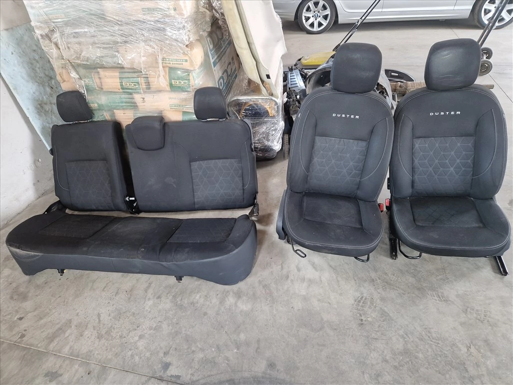 ÁLLAPOT: 2015-ös Duster-ből, a képeken látható normál állapotban, légzsákos ülés garnitúra. Tisztítást igényel, de nincs kiszakadva vagy szétkopva sehol. Angol autóból való, így a bal első ülés nem magasság állítós (a régi ülés vázával beépítve megoldható magasság állítósra is megcsinálni)